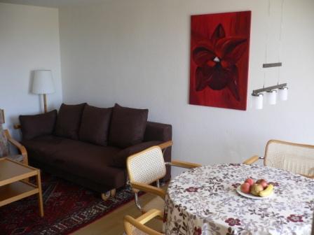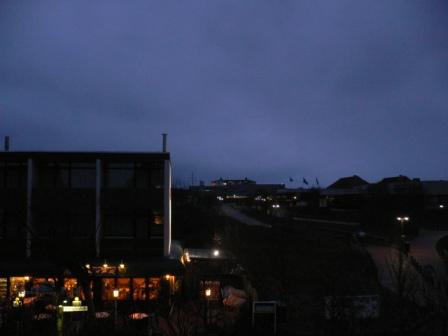 Aus dem Wohnzimmererker genießt man einen traumhaften Ausblick auf das Kur- und Wellnesszentrum. Auch am Abend glänzt Langeoogs Inselschönheit...